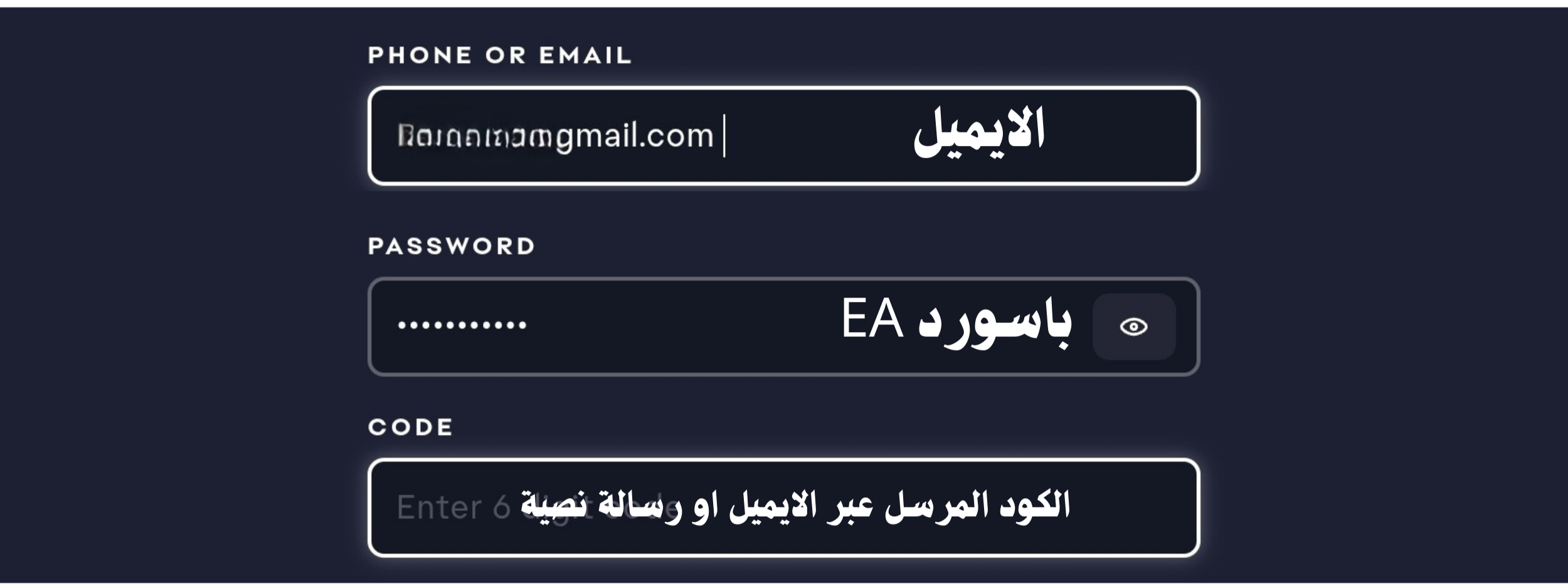 الايميل + الباسورد حق تطبيق فيفا EA