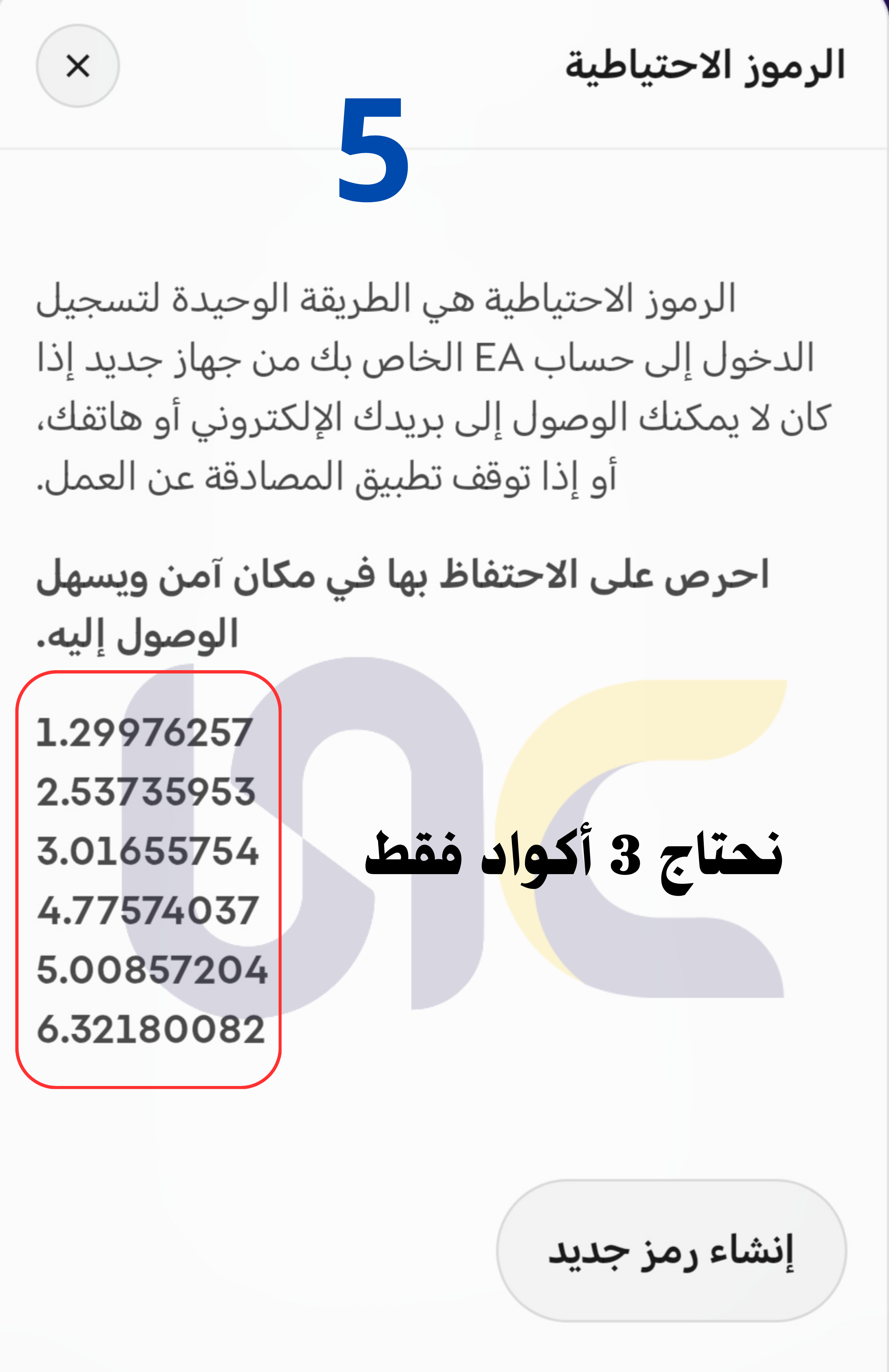 اضغط على" عرض الرموز الاحتياطية "